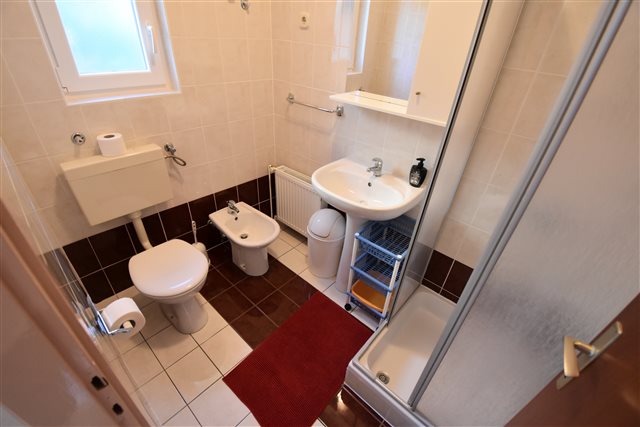 Badezimmer mit Dusche und WC: 1,
